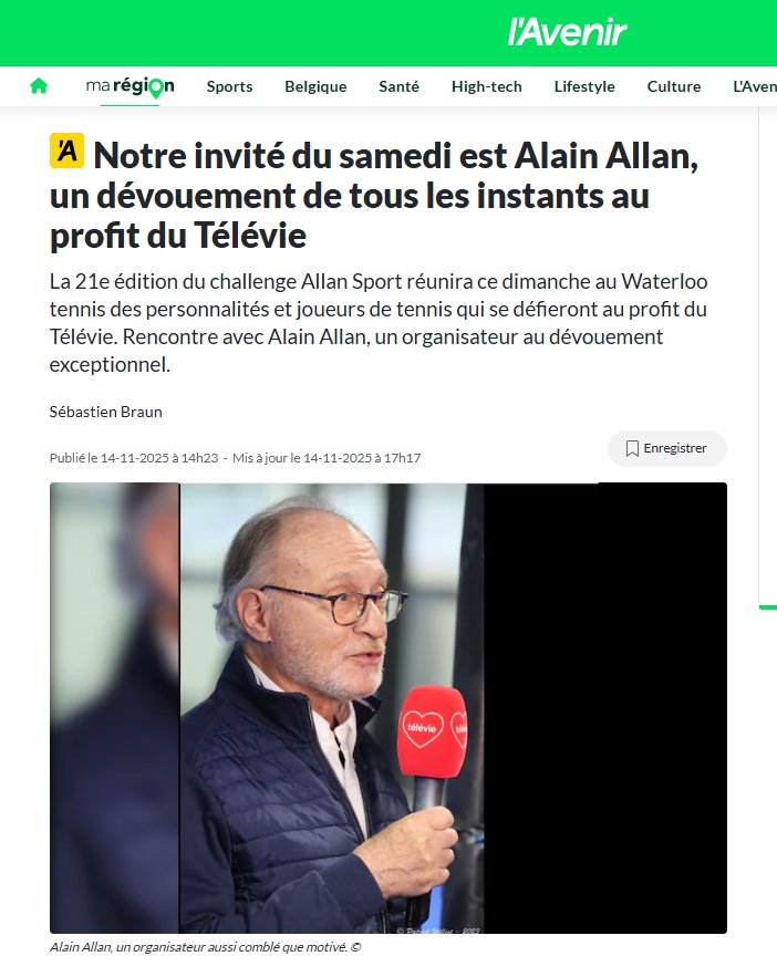 8 / Notre invité du samedi est Alain Allan, un dévouement de tous les instants au profit du Télévie. L''Avenir 15/11/2025 page 1