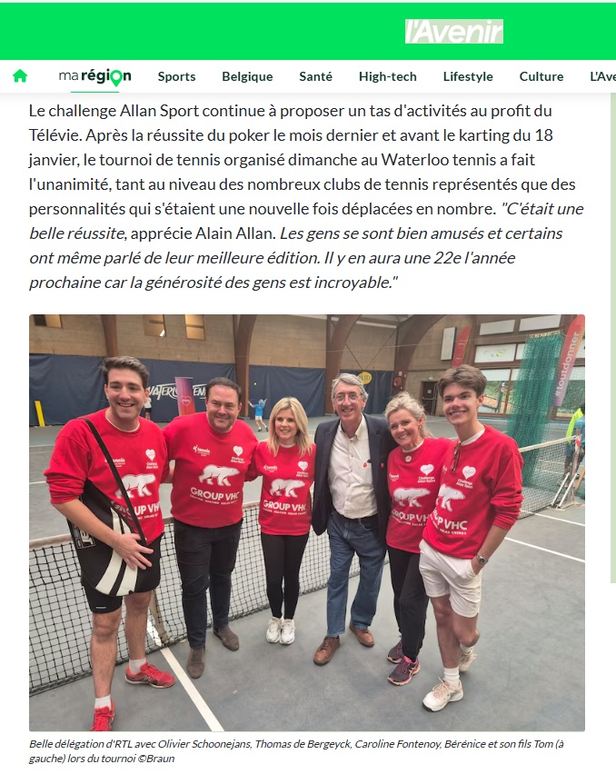 14 / Challenge Allan Sport: des personnalités au grand coeur à Waterloo. L"Avenir 20/11/2025 2ème partie