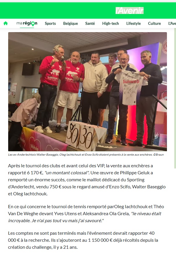 15 / Challenge Allan Sport: des personnalités au grand coeur à Waterloo. L"Avenir 20/11/2025 3ème partie